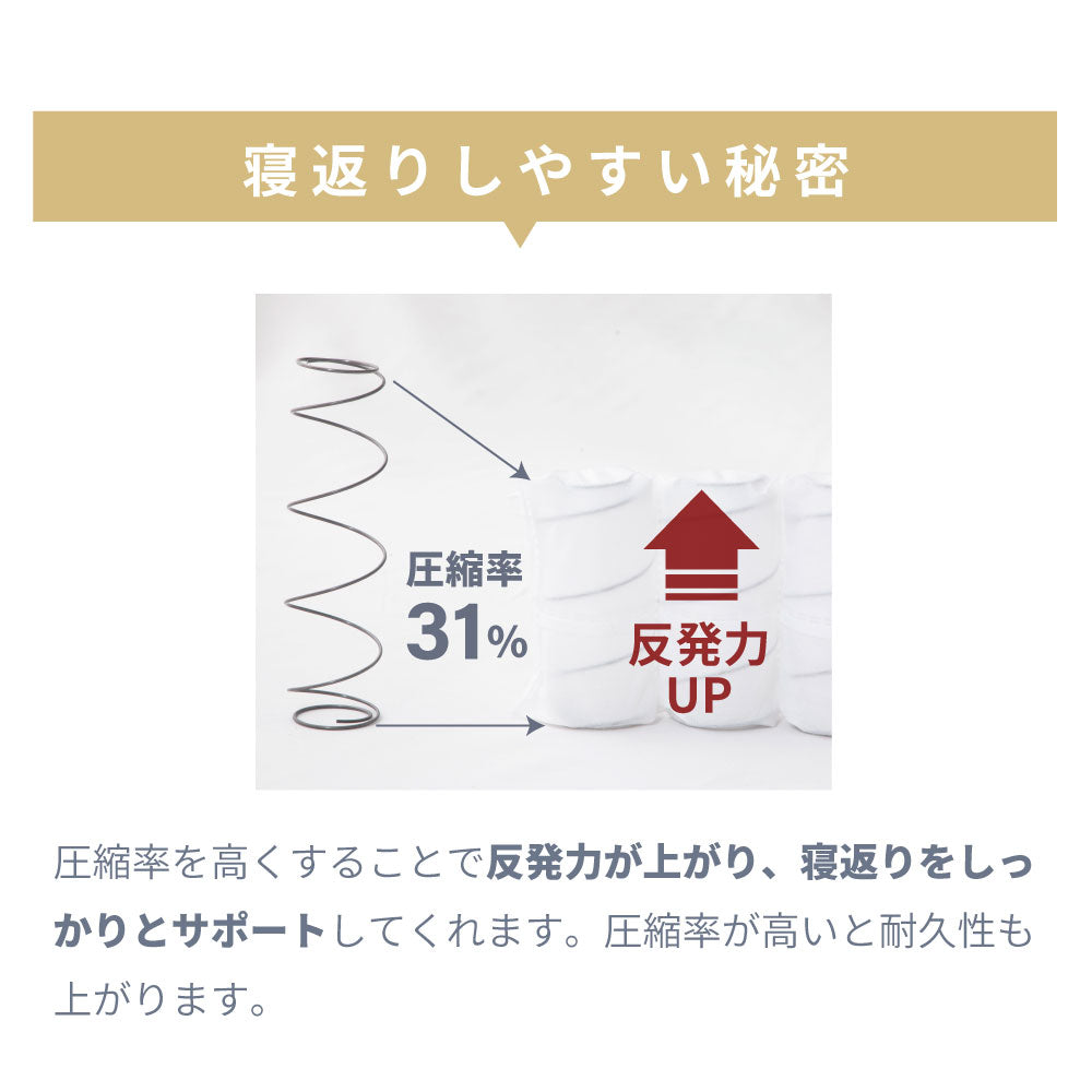 巻き数が多い=バネが長い分、体圧分散性と寝た時のあたりの柔らかさが段違いに向上しています。
