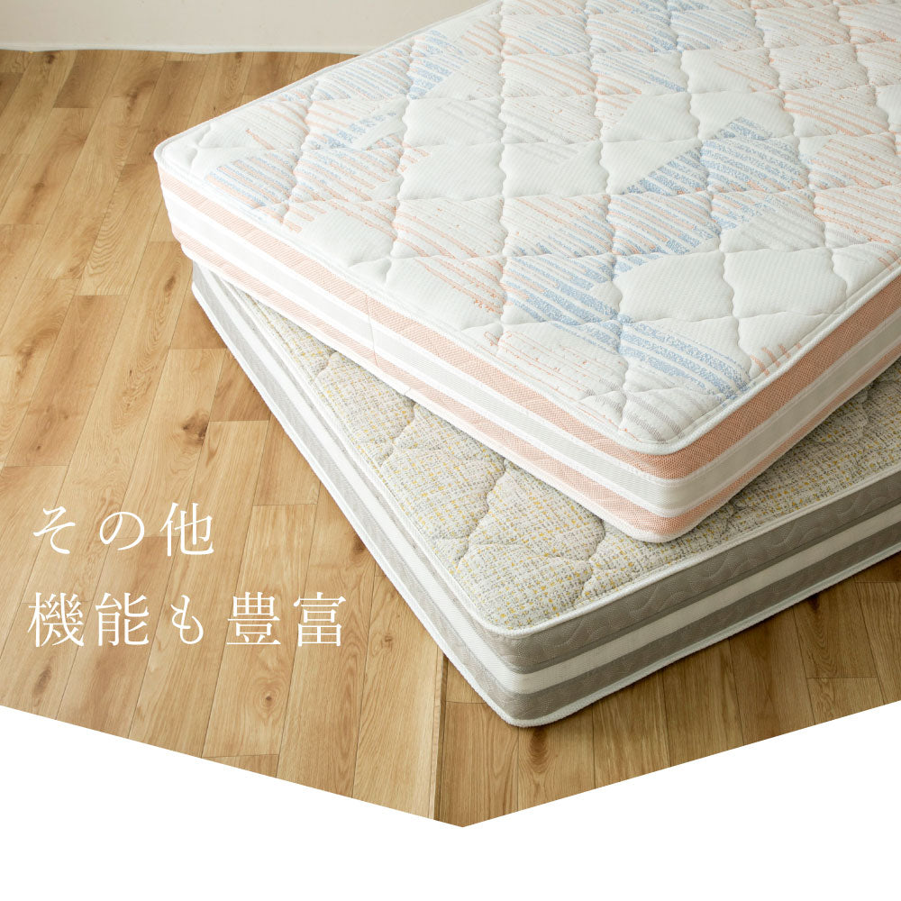 もちろん「焼き入れ加工」済みで耐久性は8年以上クラス。特に一番硬い「Keep」のみ、コイルを隙間なく埋める「交互配列(ハニカム配列)」を採用しているため、密度と硬さが別格に高められています。